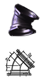 B型鑄鐵管件45°彎頭口徑:Φ50, Φ75, Φ100,Φ150,Φ200,Φ250,Φ300