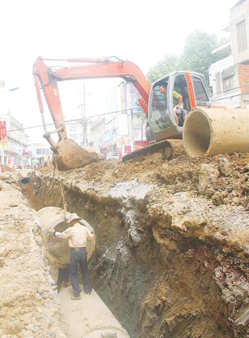 孝昌縣鄒崗鎮鎮區現有排水管網(wǎng)存在使用時(shí)間長(cháng)、規模小、規劃不合理等問(wèn)題。今年,鄒崗鎮投資13萬(wàn)元,對鎮區排水管網(wǎng)進(jìn)行改造,加快排水速度。圖為孝昌縣鄒崗鎮文衛街下水道改造施工現場(chǎng),吊車(chē)正在安裝涵管。