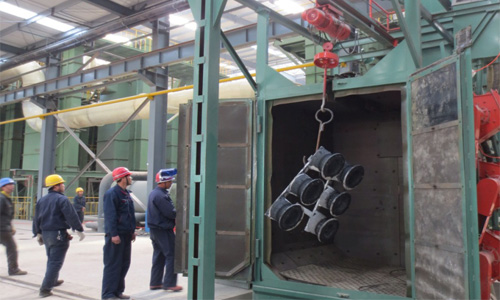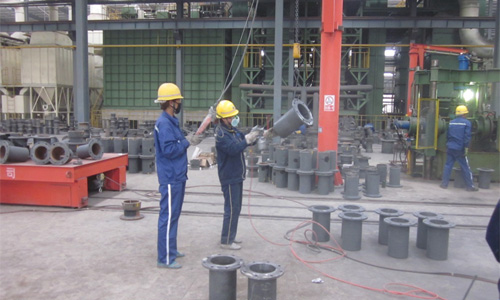 采用循環(huán)線(xiàn),減少人為縮短澆注后管件在箱內冷卻時(shí)間,從澆注完到落砂出件需3小時(shí),(工藝要求1小時(shí))確保力學(xué)性能。