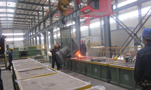 根據鐵水成分標準要求,加入適量廢鋼、硅鐵,在中頻電爐內調整鐵水成分,直至符合工藝要求。