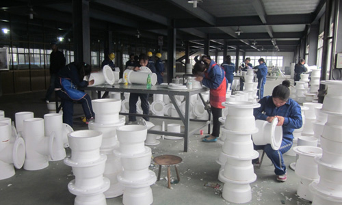 采用全封閉半自動(dòng)成型機,直管部分整體成型,避免了半模成型膜片粘接產(chǎn)生橢圓。帶支管類(lèi)管件支管部分整體成型。