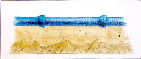 在多是石塊的土層情況下,為保護管子有條理地連續置放,應考慮安裝層的問(wèn)題(松軟土質(zhì)不必考慮)。安裝層由松軟的顆粒狀物質(zhì)組成(沙土、小碎細石粒、過(guò)篩土),其厚度應保證底部距石塊層最小距離≮100㎜。見(jiàn)圖1