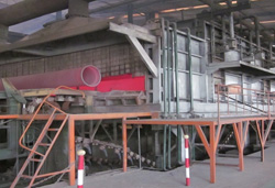 ●工藝簡(jiǎn)要:精選的鐵礦石經(jīng)過(guò)高爐冶煉,制備出球墨鑄鐵管生產(chǎn)所必需的鐵水。泫氏鑄管采用高爐-中頻爐短流程連鑄工藝、高爐廢氣再利用(球管退火)、節省二次化鐵的能耗、降低了生產(chǎn)成本、保證生產(chǎn)節奏的連續。